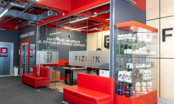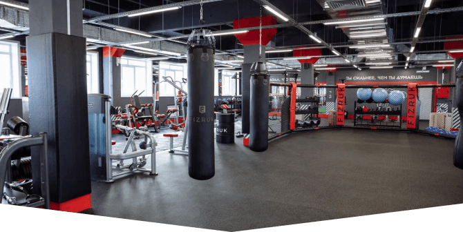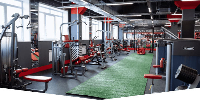 Тренажерный зал размером от 250 до 750 квадратных метров в зависимости от клуба с современным оборудованием.